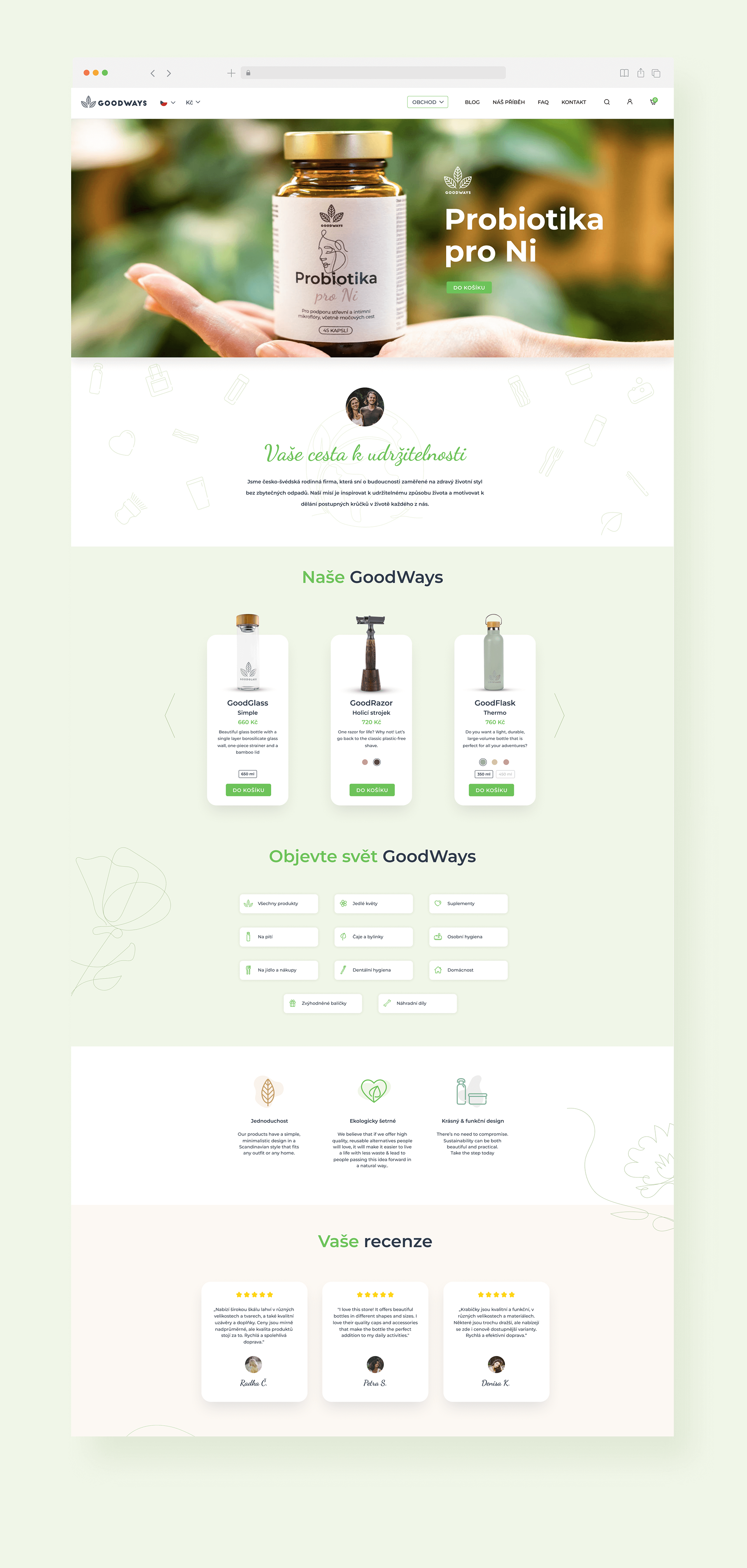 A comprehensive redesign of the e-commerce platform for GoodWays, a Czech-Swedish eco-friendly brand. Every UI element was custom designed, spanning product pages, the blog, and the checkout process.